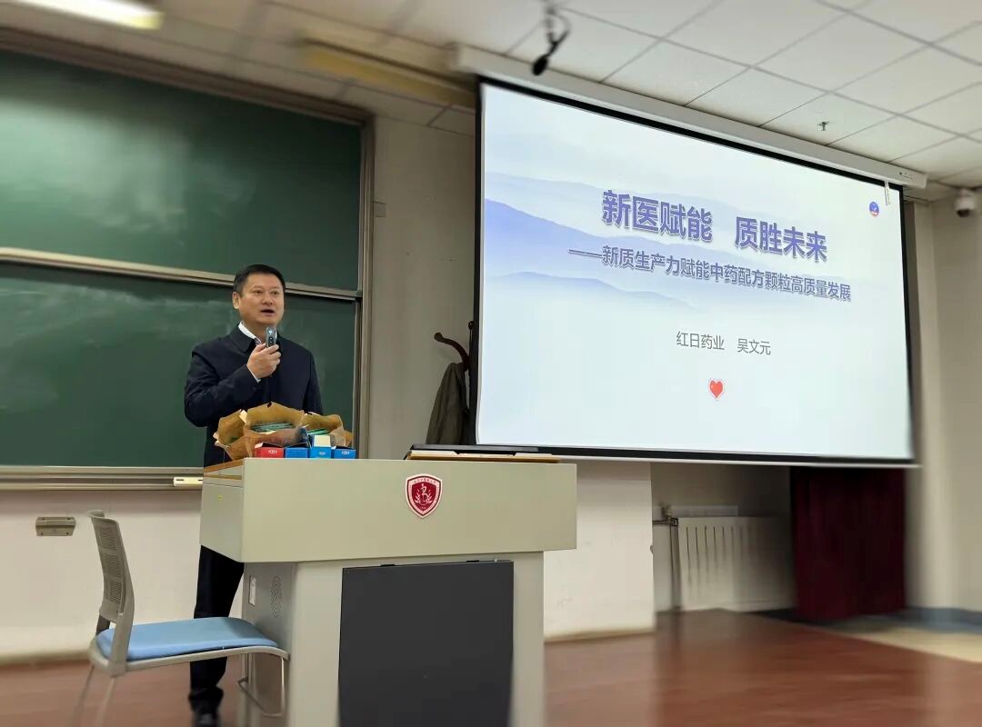 近日,北京中医药大学开展创新课程《中药配方颗粒研发和临床应用概论》理论教学。吉祥坊登录药业党委书记、董事长吴文元担任特邀主讲嘉宾,以《新医赋能,质胜未来——新质生产力赋能中药配方颗粒高质量发展》为题,为北中医学子带来一场兼具产业高度与实践深度的专题授课。